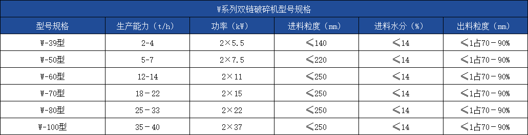 W系列双链破碎机在上部加料,由两个高速相向旋转的锤链对物料进行冲击粉碎。该机使用方便,效率高,生产能力大,维修简单,适用于各种纯碱、化肥和其它中等硬度物料的粉碎。该机克服了生产使用中物料粘结于机壳内壁的缺点,使破碎操作连续化。